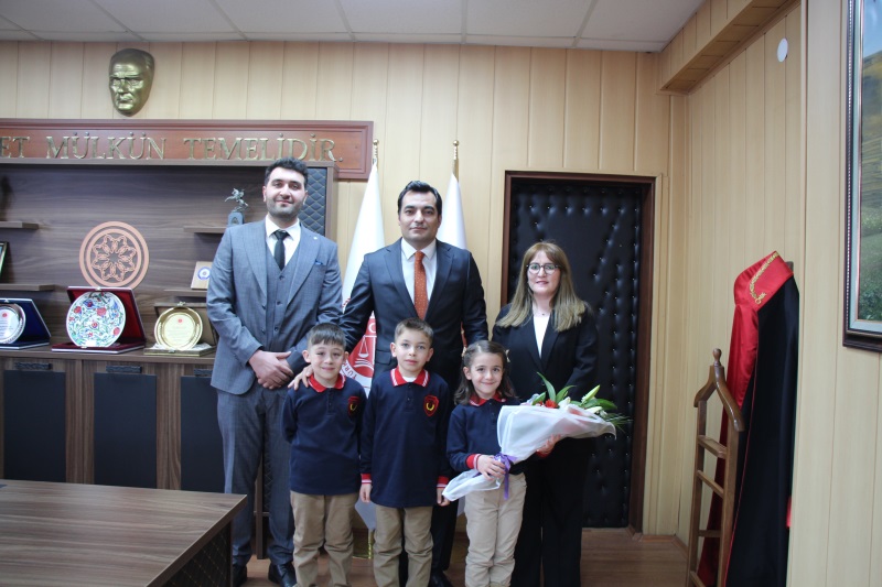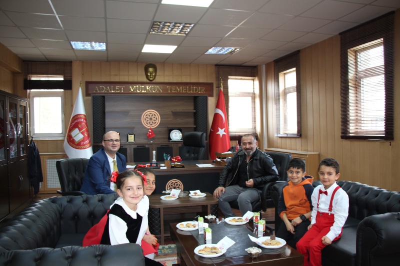 23 Nisan Ulusal Egemenlik ve Çocuk Bayramı münasebetiyle Cemal ve Zekiye Vatan İlkokulu öğrencilerinden Alya Vera Özbek, Veli Demirhan Gündüz ve Destan Yağız Ünver Cumhuriyet Başsavcımız Murat Yavuz’u, Halitpaşa İlkokulu öğrencilerinden Eylül Didem Alaz, Bilge Ada Karaçoban, Muhammet Balcı ve Emir Miraç Demirbaş Komisyon Başkanımız Adil Taşkıran'ı ziyaret ederek makam koltuğuna oturdular.